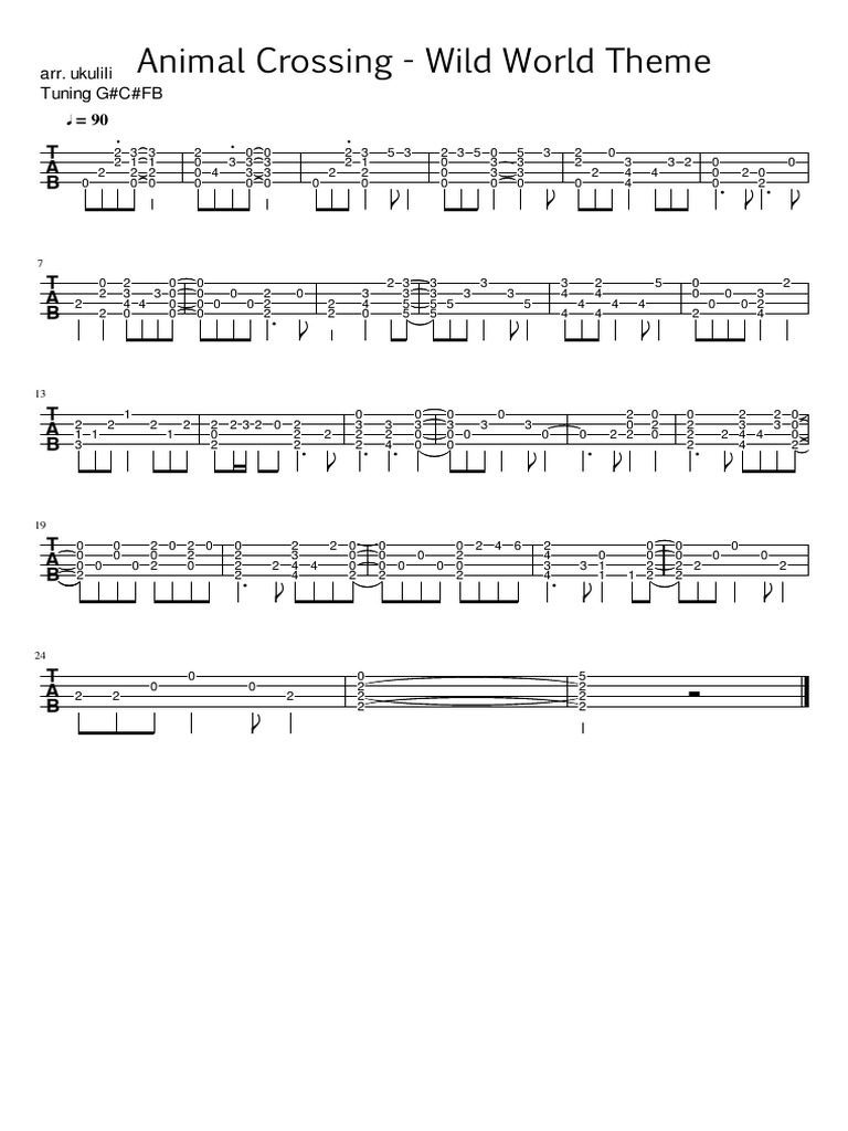 Animal Crossing - Main Theme Ukulele - Ultimate Guitar Animal Crossing - Main Theme Ukulele. Misc Computer Games. 68,371 views, added to favorites 3,525 times. Tuning: G C E A. Capo: no capo. Author snippuff [pro] 72. Last edit on Oct 23, 2020.